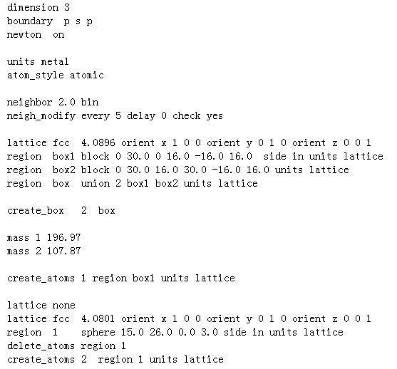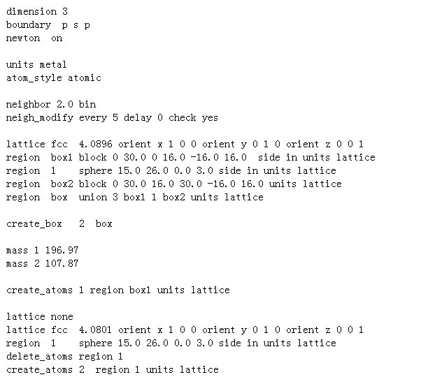 求解释,命令语句如图,为何计算后发现是类型1的原子质量定义到了region 1 中,而不是应该的类型2,(根据动能计算得知)。不知是何缘故? 原子质量为类型1 的定义到了box1中,原子质量类型为2 的定义到了region1 中,二者没有交集的,为何计算结果却表现为原子质量类型为1(即196.97,而不是107.87)的定义到了region1中呢? 11111.png |