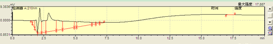 我的流动相是甲醇醋酸铵溶液,主药是子囊霉素类化合物,怎么出来的峰是这样的啊!打了空白,5分钟之前都是容积峰.该怎么办?还望各位前辈赐教