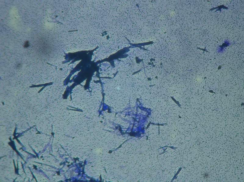 大家帮忙看看链球菌发酵镜检照片中树枝状的是什么东西