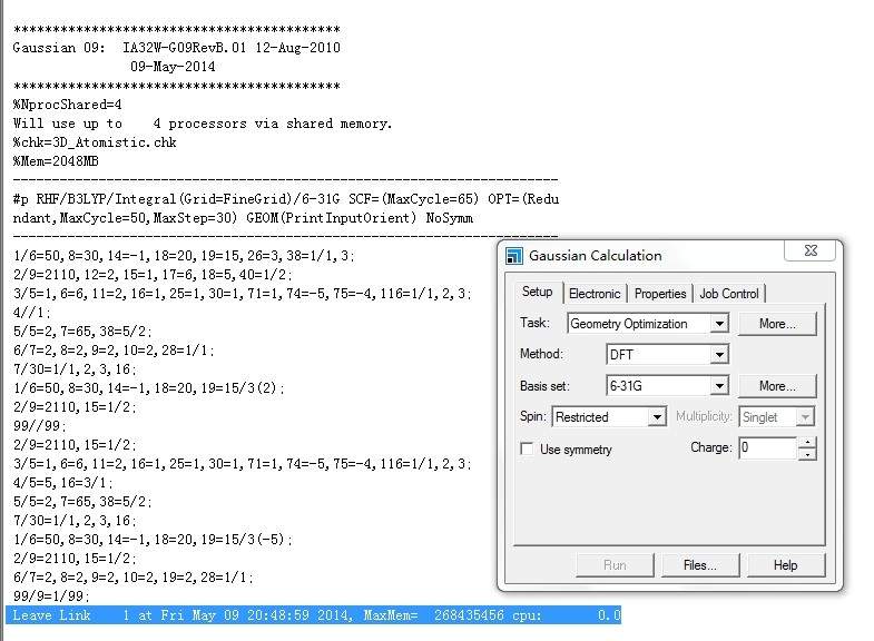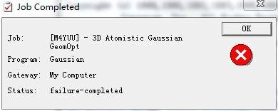 楼主你的问题解决了吗?我跟你一样, 我也是一开始运行出错,是因为没有装高斯软件,现在装上了,跟你一样的错误。。。不知道怎么处理。求解答!