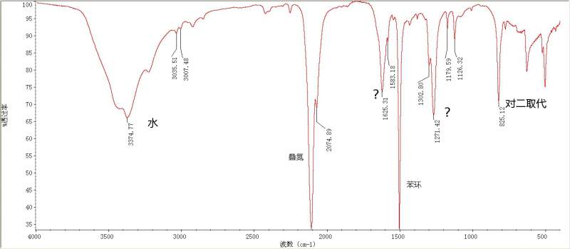 最近用对苯二胺合成了对叠氮苯,用乙醇溶了做KBr红外,在1271处的峰是什么呀,好纠结,是苯环吗?