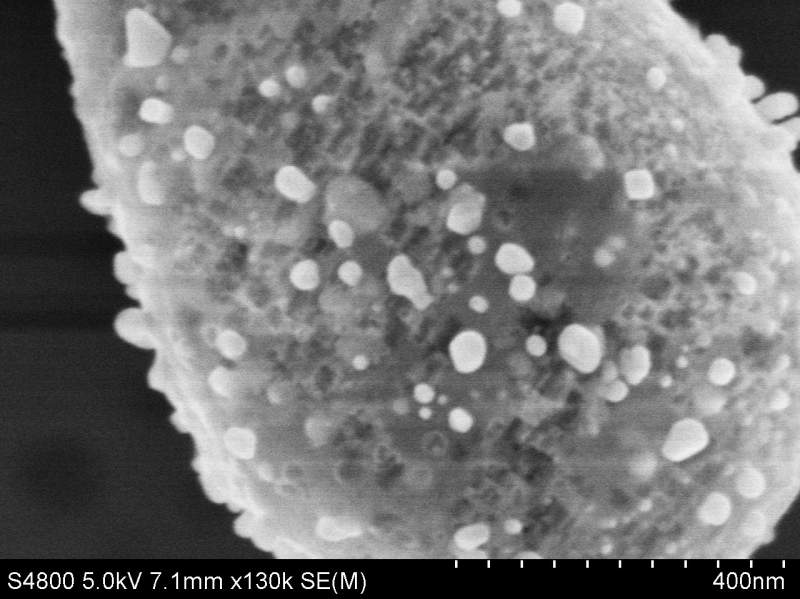 谢谢,我还想再请教一下。图片中,出现类似空洞状的东西,感觉表面被腐蚀状的样子,这是怎么回事呢?还有图片中的大块是不是应该为Ag,而AgCl 为小颗粒,负载到大块上面。当电子束一打,就会变化。我可以说再Ag表面负载了AgCl颗粒么? 非常感谢~~