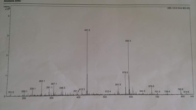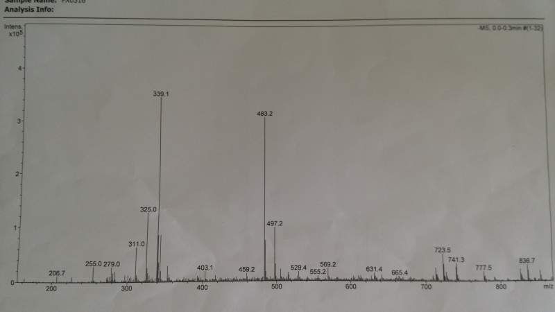 一个皂苷类的化合物,下面是用液质打的质谱图,一个市正离子模式,一个是负离子模式,我谁不是新手,但水平不怎么样,看了半天也没看出分子量,怎么样去解析呢?求大侠指点,如何得到分子量?谢谢![]() ![]() ![]() IMG_20140512_100318.jpg IMG_20140512_100419.jpg |