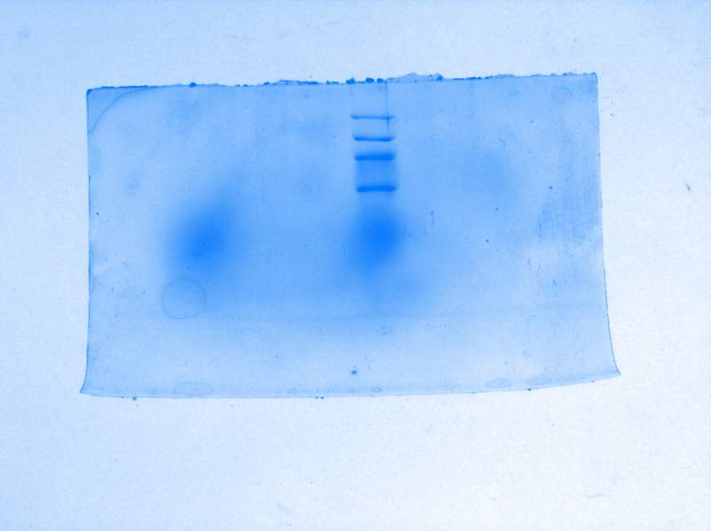 各位大哥大姐,这是我做的SDS-PAGE蛋白质电泳的图片,没做成功,求指导