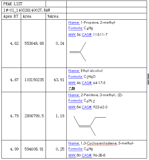 1、如果算上5%时间偏差的话,应该两个都是乙醇,所以说从图上得到的信息只是这些。 2、对于是否是乙醇还是戊二烯,如果有条件可以进两针乙醇,看看时间的重现性,如果非常小,则可以断定仪器稳定,图1和图2是两种物质,如果时间飘逸较大,则不好判断 3、另外,两个相近样品找人做,是否是同一仪器,如果不同的话,时间偏差大些也会是正常 |