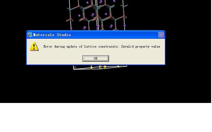 用MS6.0建完真空层后,固定下层原子时出现错误提示,是什么原因? 未命名.JPG Error during update of lattice constraints: Invalid property value |