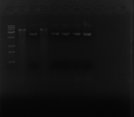 你照的相曝光度太小了,只有质粒的超螺旋能清楚看到。其实上面还有两条带的~