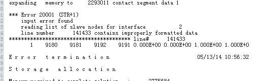 最近做了一个LS-DYNA的动力学分析,用的是SPH-FEM耦合法,在运行的时候报错,但是错误的行号找不到。MESSAGE里面的错误行号为141433,但我的K文件最大行号才92337,而且搜索错误的内容也搜不到,具体情况如图,求各位大神帮忙看下。 cha.jpg k.jpg message.jpg |