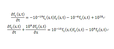 这是一个一阶偏微分方程组,我现在想画出f1、f2随x、t变化的三维图,哪位高手帮我解答一下,麻烦把程序以及M文件给我写下,万分感激 其初始条件:f1(x,0)=0,f2(x,0)=0,f2(0,t)=10000,x的范围0到1,t的范围从0到0.00001 fangcheng.gif [ Last edited by 1592203609 on 2014-5-29 at 10:42 ] |