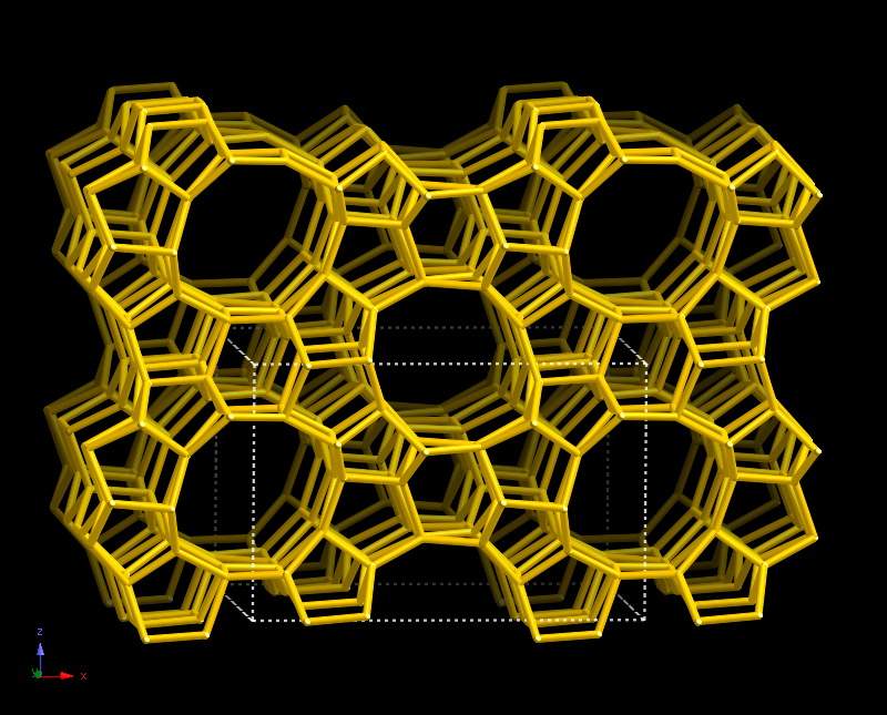 可以去这网站上查阅现已经发现的各种类型的分子筛的结构(包括3D动态结构)及详细数据: http://izasc.ethz.ch/fmi/xsl/IZA-SC/ft.xsl 可以搜索名称来查找 附图: ZSM-5: http://izasc.ethz.ch/fmi/xsl/IZA ... C=MFI&-find Y分子筛: http://izasc.ethz.ch/fmi/xsl/IZA ... C=FAU&-find |