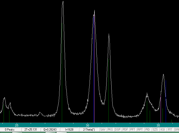 也不知道有没有用给你点资料吧: 1.Two-theta scans between 27° to 33° were used to estimate the tetragonal/monoclinic ZrO2 ratio, and scans between 55° to 62° were used to confirm the tetragonal or the cubic ZrO2 structure.------《US 4316964 A》 2.http://muchong.com/bbs/viewthread.php?tid=3112526 |