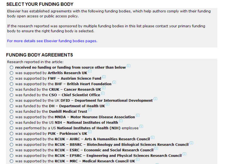 一篇论文前面录用,今天收到说填一些表格,在RIGHTS AND ACCESS中要选择FUNDING BODY AGREEMENTS,如下图所示(搞不明白,貌似要收钱什么的,但是这个期刊我投的时候好像选的是不收钱的)