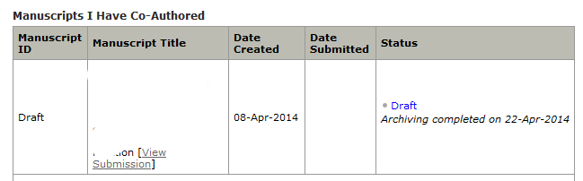 能说明为什么没投上吗?不是Manuscript Title 和日期都有了吗?