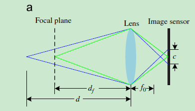 在一般的光学成像系统中,可以入1图所示: 一般称作为circle of confusion(CoC) 成像,而CoC一般表示为图2, 而根据Point Spread Function (PSF)理论,模糊的成像可以认为是热扩散过程,并且在假设扩散过程为高斯扩散的前提下, c = k * sigma; 问题: 如何取得k? 谢谢。 图1.png 图2.png |