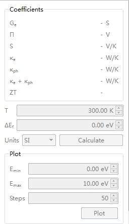 是算材料热电性质里面的一些参数,Ge——电导,单位是S(西门子),S——塞贝克系数,单位是V/K,Ke——电子的热导,Kph——声子的热导,ZT热电优值。