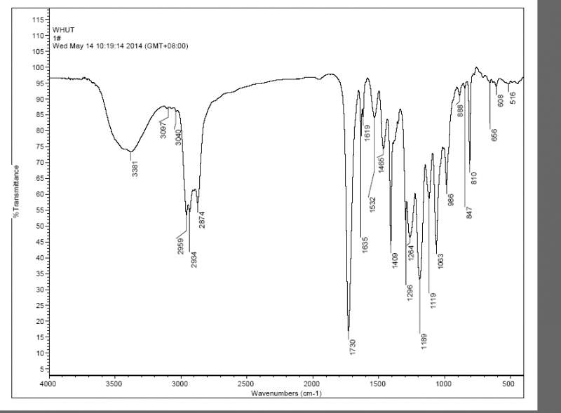 这个是一个液体的红外光谱图,不太会分析,请大家帮忙看下这是什么物质(什么丙烯酸脂之类的),谢谢好心人了。。
