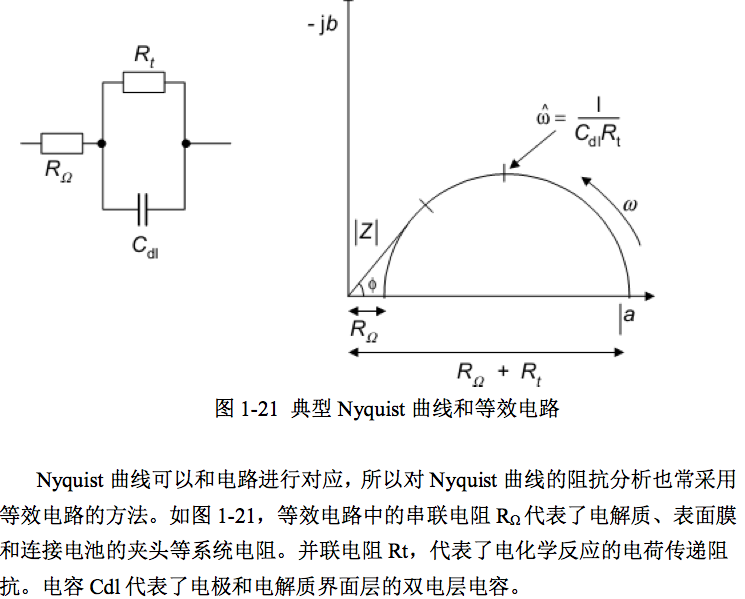 与x轴第一个交点是系统内阻 半圆是电极电解质界面的双电层