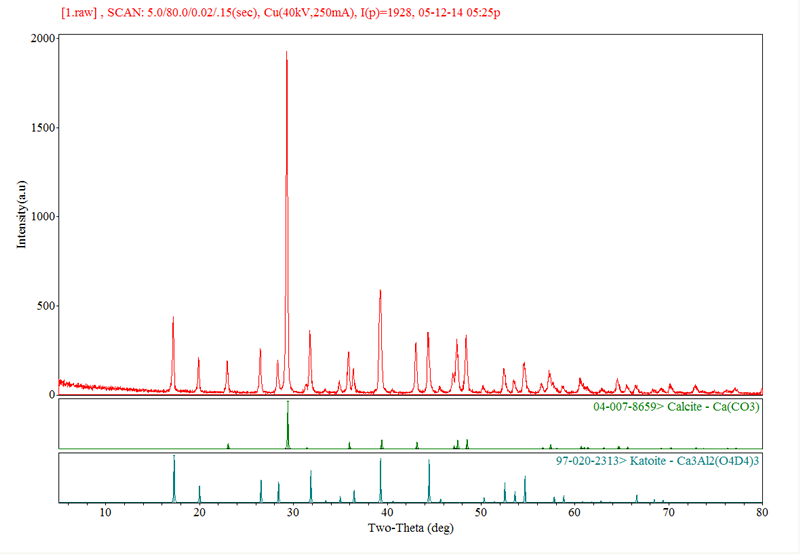 你好,,请问你上图这种物质有没有分析出来啊,,我今年做毕业论文。制备水铝钙石。做的XRD图跟你的差不多一样。。求解啊