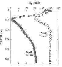 为什么海水深度在700-1000米时的溶氧量达到最低点,然后又随海水深度的增加而大幅增加?甚至还会高于表层的溶氧量。参见下图