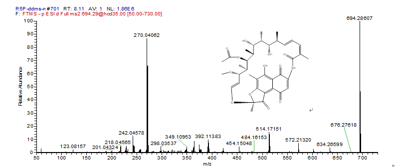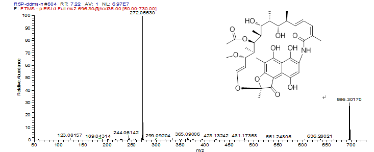 实验得到一张质谱图,麻烦各位大哥帮忙解析一下这,含有结构式。