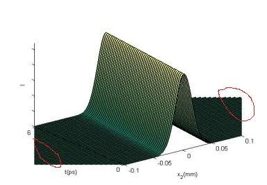粗略估计,你画图之前x2轴(mm单位)的取值范围超出[-0.1,0.1],画出图之后再修改x2轴的取值区间的,所以会造成这个问题。