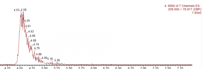 用UPLC-MS/MS测DBP,出峰如下图: