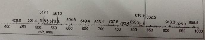 Q+除一个强度为1.09e7的离子峰834.9,强度为5e5的517.1,,561.3,818.9,832.5的峰外,基本没什么峰。