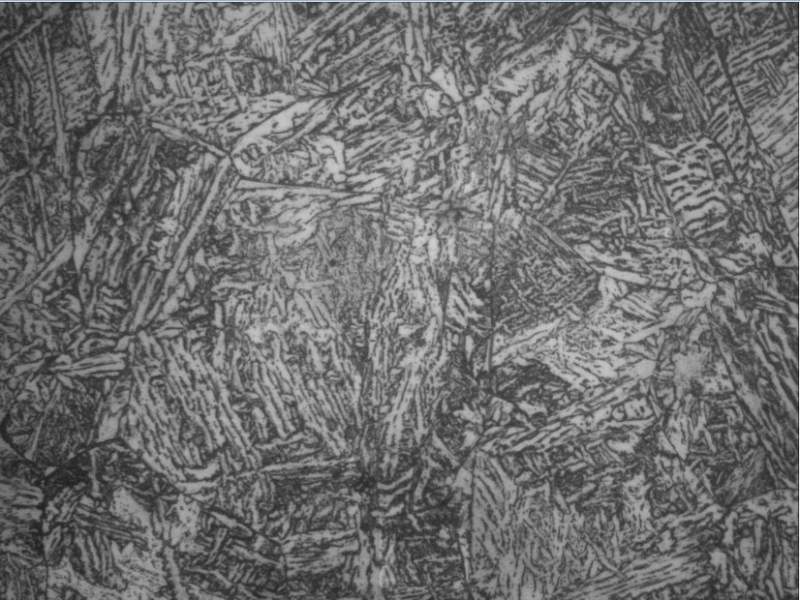 3、类似于珠光体组织,可以看到明显的原奥氏体晶界,晶界里有几个珠光体团。