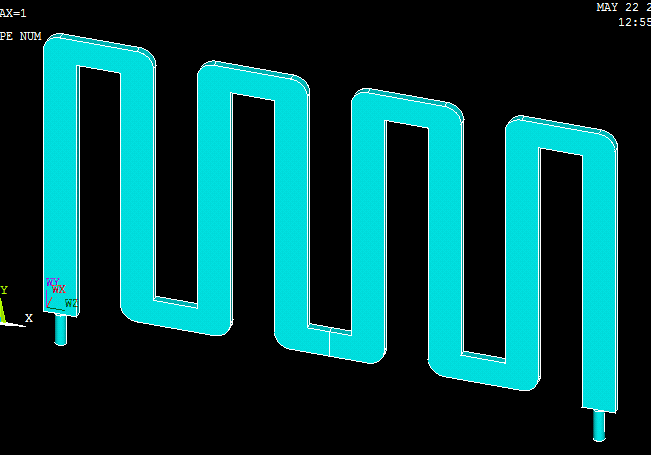 各位大侠,帮帮忙吧。。。。一个水管道,如图A、B,由三部分组成,底下两个是小圆柱,上面的水管是先画了一个平面,如图C,然后VOFFST由法向偏移成体,(所以水管的横截面其实是矩形的),再把左边水管镜像生成右边,最后把两个小圆柱和上面的连管用VADD成一体,之前用自由网格划分网格质量一直不行,请问怎么用映射或者扫略划分网格啊。。。 A.png B.png C.png |
