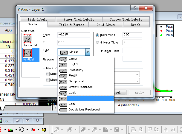 | 怎么把orange8中的纵轴变为Ln的形式,双击的话只能出现Log10和Log2的形式啊 |