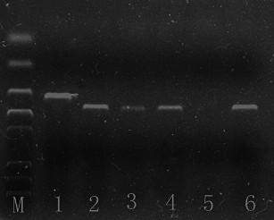 电泳检测结果(图2)显示,1、5、6泳道为成功的阳性单克隆,条带大小约为1100bp,与目的条带大小一致。2-4泳道没有条带,说明为阴性克隆,不成功。