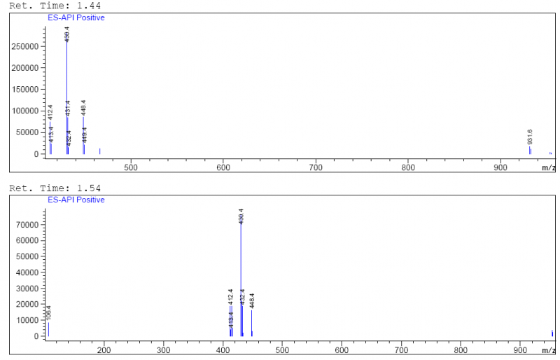 可能1.44min的峰为目标化合物,质谱图裂解方式如下:931为2M+1峰