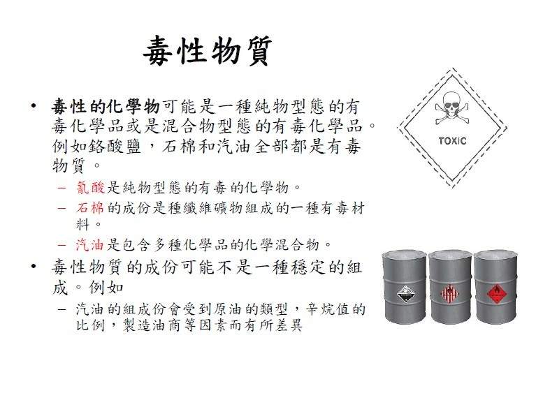 普通毒物学的课件 繁体字见谅 内容包括1 毒物学概述 2 吸收 3 分布 4 代谢 5 排除 6 毒理动力 7 计量与反应关系 8 毒化物的毒效 9 受害细胞的反应 10 受害器官的反应 11 生物个体的反应 12 影响毒性强弱的因素 13 毒性试验 14 交互作用 仅供学习,不得商用 未命名.jpg |