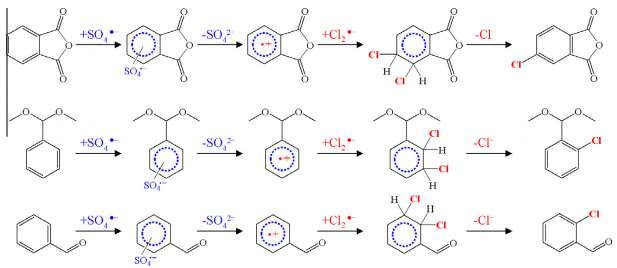 1. 我们研究发现氯酚在氧化降解时,脱掉的氯离子会二次参与反应生成多氯产物。