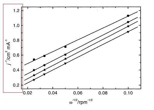 用Koutecky-Levich方程计算氧还原转移电子数,用1/J对w-1/2作图,我想问J怎么算,J是电流密度mA/cm2,实验测量的电流是mA,那么电流密度怎么求?是对活性面积归一化还是电极头面积归一化??如果对活性面积归一化,可是活性面积的单位是m2/g?我计算的电流密度的数量级总是和文献里的对不上?求大神指导!求详细计算过程!