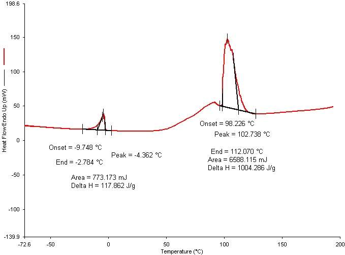 我的数据为聚氨酯在氮气氛围中的DSC分析数据,图中出现两个吸热峰和一个斜坡。 想问一下(1)这两个吸热峰都是结晶熔融峰吗? (2)另外结晶熔融峰和熔融结晶峰一样吗?两者有何区别? (3)能根据那个斜坡得到Tg吗? (4)聚氨酯存在微相分离,但是在这个图中-70℃左右没出现预期的软段的玻璃化温度,难道已经变成了第一个结晶熔融峰?但我的软段结晶性能很差的。 dsc.jpg |