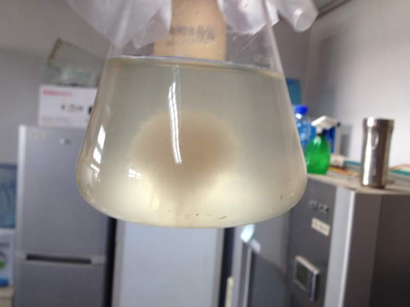 各位微生物同行们,大家好,我是做新种鉴定的,收集菌体时需要液体培养,我尝试了多种方法,例如甘油管划线之后挑单菌落液体培养和直接用甘油管液体培养,可是都会长出像棉花一样的球体(如图)。考虑到染菌的问题,采用了各种手段还是不行,我的最相似菌属为叶杆菌属,也不是放线菌,用的培养基为YMA培养基(甘露醇琼脂培养基),想问问大家这是怎么了,有什么解决办法,谢谢各位了。 IMG_0708.JPG |