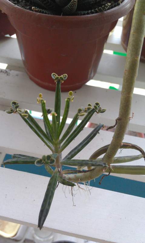 第一种:肉肉的圆柱形叶片,叶片顶端可以长出小个体。