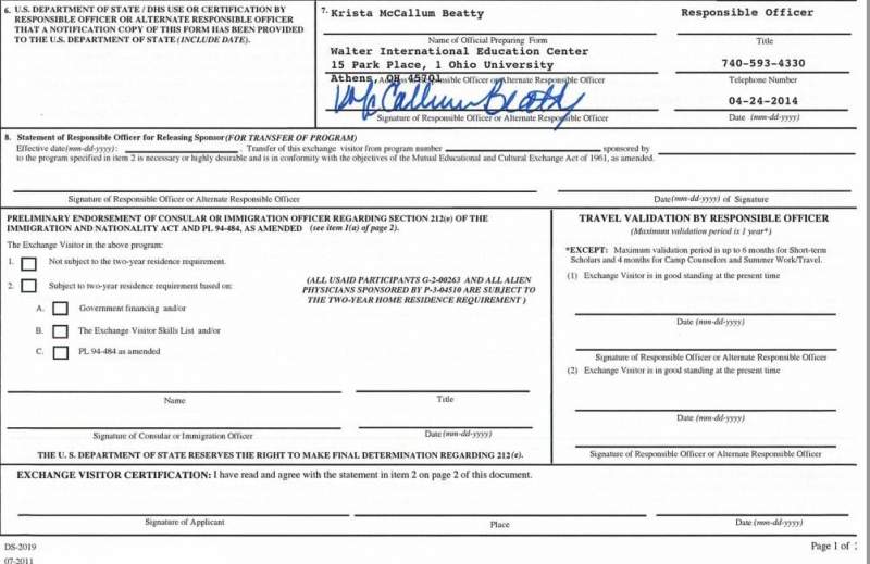 各位大侠好!我是第一次签美国的B1签证,结果签证官告诉我根据我邀请信的内容,我需要申请J1 exchange visitor 的签证,因此把我材料和护照收了,告诉我只需要现在问对方学校要一个DS2019表格,然后传真给他们或者发扫描件到他们大使馆即可,就可以办理为J1了,现在签证办下来了。有两个问题: