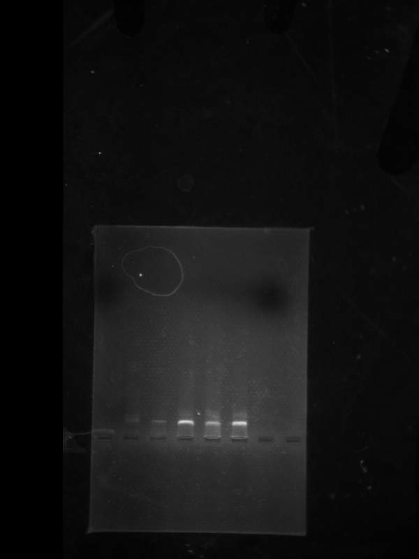 采用的是碧云天的DNA ladder试剂盒,Marker旁边依次是:对照,药物一,药物二,双氧水。都是同样的样品,分别是两天跑的,第二天跑的电压小些。 提完DNA后,去除乙醇,加入50ul TE,觉得太过粘稠,就又加入了50 ul。不知道是DNA太浓,还是因为我提的不对,怎么跑不动还是怎么了呢? 5-31.jpg 5-30.jpg |