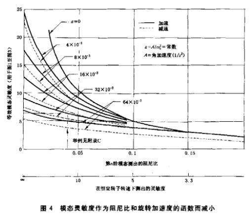 高人看看下图是怎么来的“模态灵敏度作为阻尼比和旋转加速度的函数而减小”
