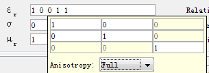 请教各位高手,在用COMSOL RF模块模拟时,怎么设置使得求解域中的材料属性下的epsilon ,mu的9个值都能编辑,一般都只有编辑5个值。非常谢谢各位的帮助!