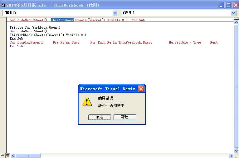 文件打开时,经常提醒“启用宏”,点开后又提示“编译错误:缺少:语句结束”,太复杂了,整不明白,不知哪位高手愿意伸出援手,非常感谢!![]() 具体如下图所示: |