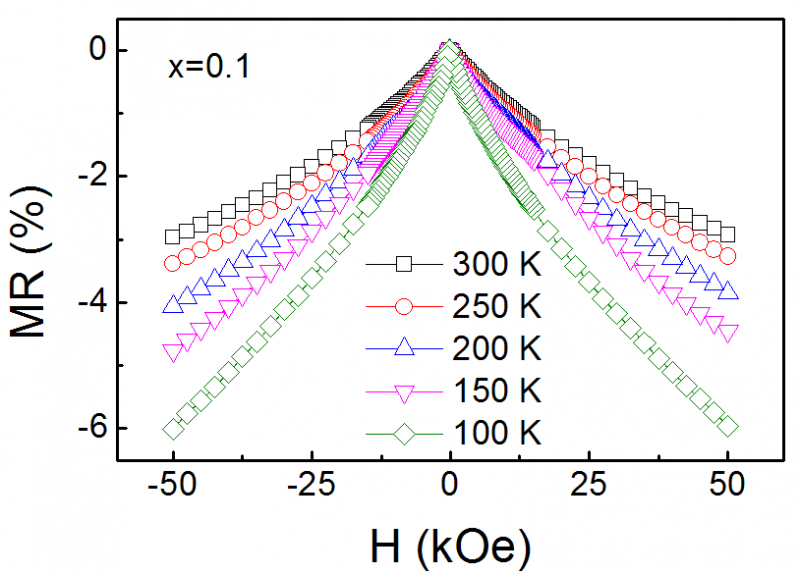 我做了一个V掺杂Fe3O4,磁电阻如图。