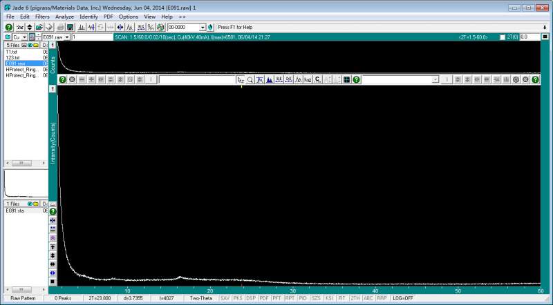 http://muchong.com/html/200904/1292977.html MS里新建grid document 参考这个帖子 把你的txt的数据 2theta和强度复制到里面 tools——plotgraph可以生成txt对应的xrd图形 ———————— 我对XRD不是很熟,不知道说的对不对,从raw输出的图形来看,跟常见的XRD尖锐峰图形不一样,我不知道图形是不是符合你的预期 |