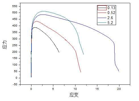 最近做了一组关于拉伸速度对拉伸强度影响的实验,发现在不变速的情况下,拉伸曲线都没有出现屈服现象(拉伸速度分别为0.13、2.6、0.52、5.2 mm/min),但是在变速拉伸下(先0.13 后5,2 mm/min)却出现的屈服现象。按我自己理解来说,既然变速下出现了屈服,那么不变速的5.2mm/min肯定会出现屈服,但是却没有。我只知道屈服现象与可动位错密度有关,但是我还是无法解释。求指导。。。