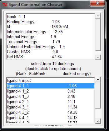 双击后不是应该可以显示对接的构象图么,然后就出现了错误protein instance has no attribute ‘docking’