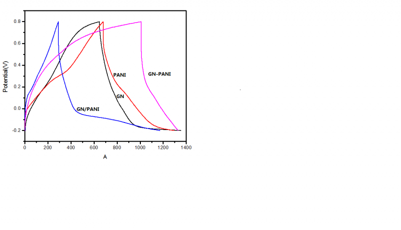 下图是我做的石墨烯与聚苯胺复合材料的充放电曲线,我使用乙醇溶解分散的,发现蓝色曲线是通过将石墨烯与聚苯胺超声混合到一块的,发现其放电部分末端的斜率好小,这是什么原因造成的呢,还有计算质量比电容的话具体怎么计算啊,公式我知道的,只是不清楚到底要不要算压降以及要不要将放电部分不同斜率的分开计算再求平均?求专业回答