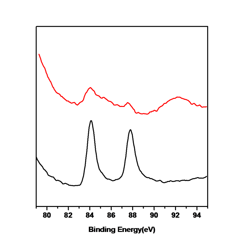 急求,所做的是Au-Cu化合物,其中Au的含量为1%,途中黑线是反应前Au的XPS,红线是反应后Au的XPS,所做的反应是苯甲醇氧化,反应前Au的峰很好归属,可是反应后在85ev和92ev左右出现两个峰,查了很多东西,也没法归属,不知道哪位大神给予帮助。 图片1.png |
