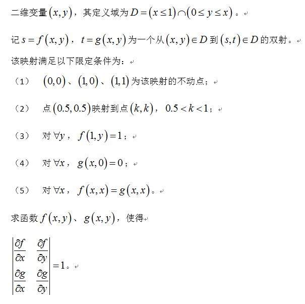 当然, T1的定义其实相当任意, 比如 (x,x) --> (x+k*sin(pi*x), x+k*sin(pi*x)), (x,0)--> (x+k*sin(pi*x), 0).总之满足要求的映射大把大把的. |